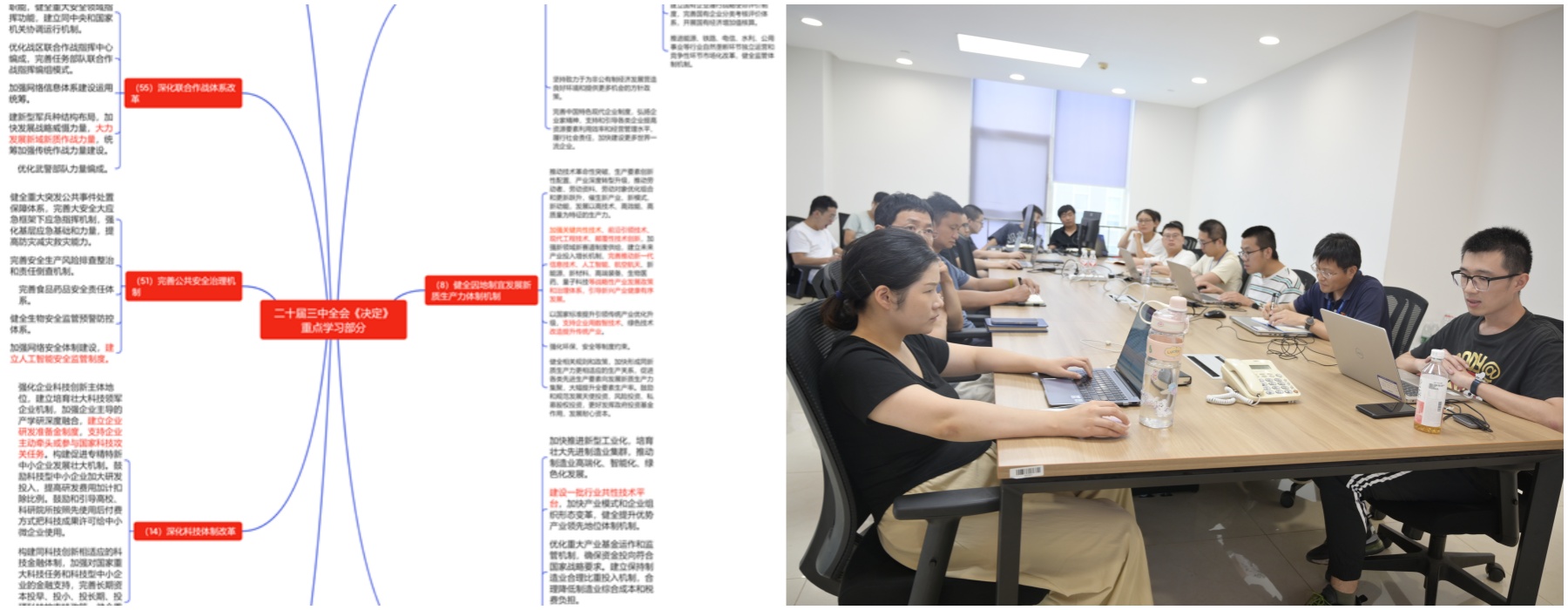 第九黨支部第一小組重點(diǎn)學(xué)習(xí)了“注重構(gòu)建支持全面創(chuàng)新體制機(jī)制”,黨員同志們紛紛表示深刻體會了堅持守正創(chuàng)新的重要性,堅持守正創(chuàng)新,是我們在新時代推進(jìn)各項事業(yè)發(fā)展的根本要求。在軟件研發(fā)過程中,在保證基本原則和規(guī)律的基礎(chǔ)上,要勇于探索新的技術(shù)、方法和業(yè)務(wù)模式,推出更好的產(chǎn)品服務(wù)更多的團(tuán)隊,以滿足不斷變化的市場需求,為民族軟件的進(jìn)步貢獻(xiàn)力量。第九黨支部第二小組通過學(xué)習(xí)《黨的二十屆三中全會 一圖讀懂》,觀看《學(xué)習(xí)貫徹黨的二十屆三中全會精神系列專訪|深刻領(lǐng)會進(jìn)一步全面深化改革的主題》帶領(lǐng)黨員同志們深入學(xué)習(xí)會議精神,加強(qiáng)了對全面深化改革的理解,使黨員同志們把握會議的核心要義和實(shí)踐要求,從而在各自的工作崗位上更好地落實(shí)黨的方針政策,推動各項工作的高質(zhì)量發(fā)展。
