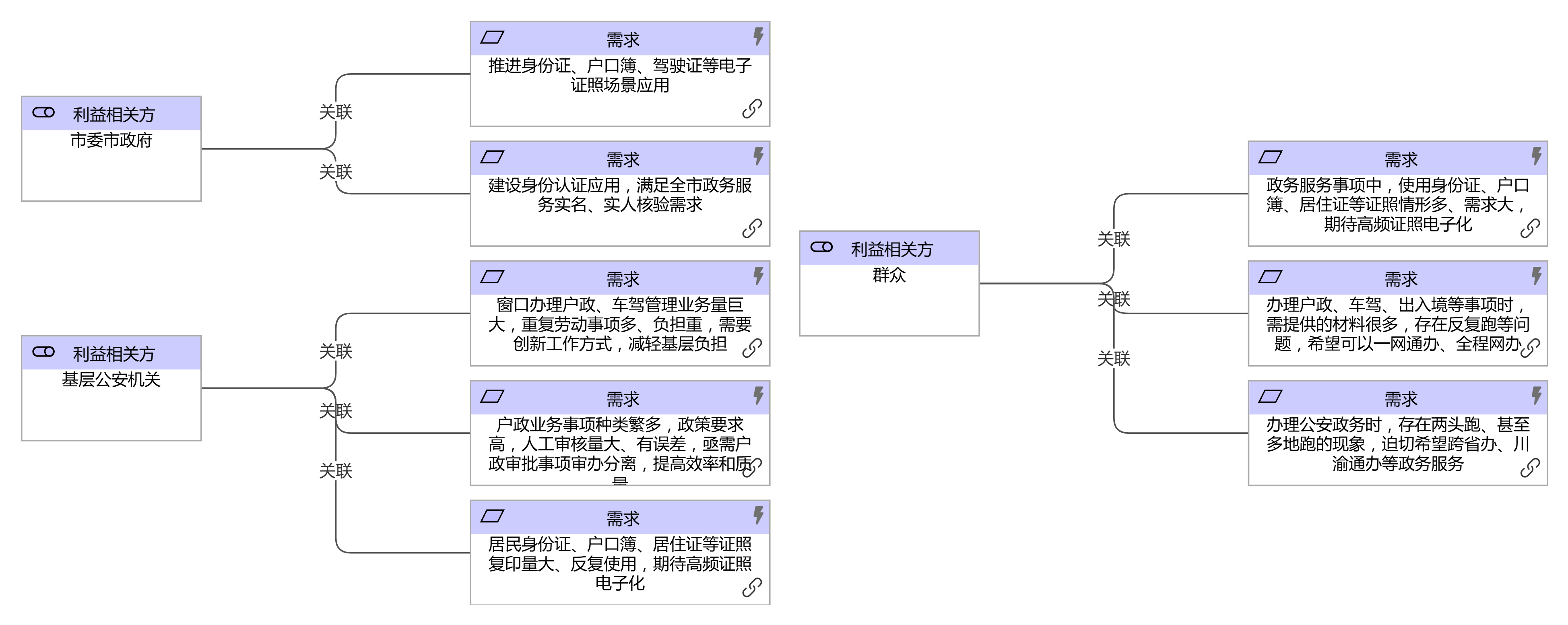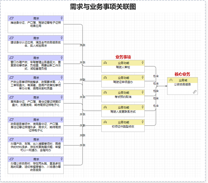 在“三張清單”中,需求分析是基礎(chǔ),聚焦于國(guó)家所需、群眾所盼、未來(lái)所向。要找準(zhǔn)最緊迫、最現(xiàn)實(shí)、最棘手的問(wèn)題,作為改革的突破口。因此,重大需求清單與TOGAF框架中的利益相關(guān)者及需求分析視圖的含義十分契合。